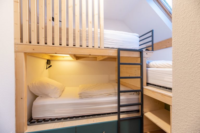 Chambre 3 : lits superposés XL (90) et 1 lit simple (90)